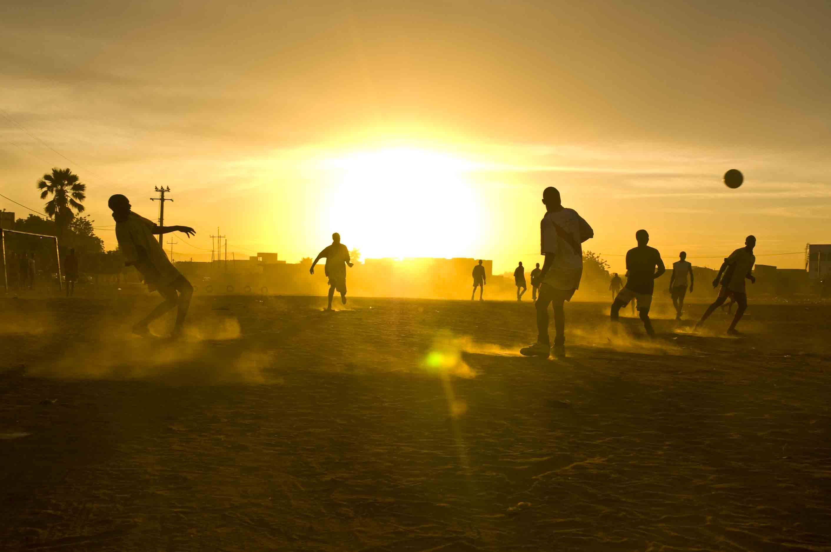A sunset (and dirt lot) game of football. Previous Image Next Image